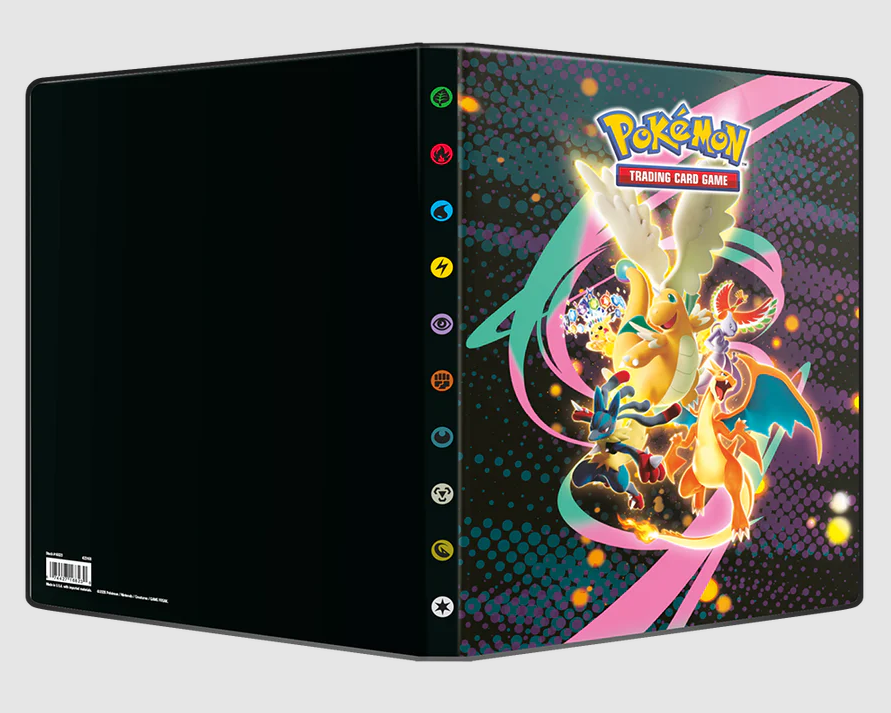 9-Pocket Portfolios for Pokémon feature a vibrant, full-art cover of Mega Dragonite, Mega Charizard, Mega Lucario, Mewtwo, Ho-Oh, and Stellar-type Terastallized Pikachu. Each portfolio stores and protects up to 126 standard size cards single-loaded and 252 cards double-loaded in archival-safe pages. Made in California, U.S.A.