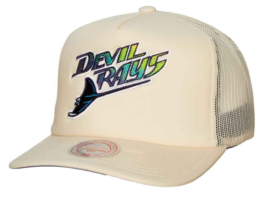 Mitchell and Ness Off-White Tampa Bay Rays Evergreen Trucker Hat