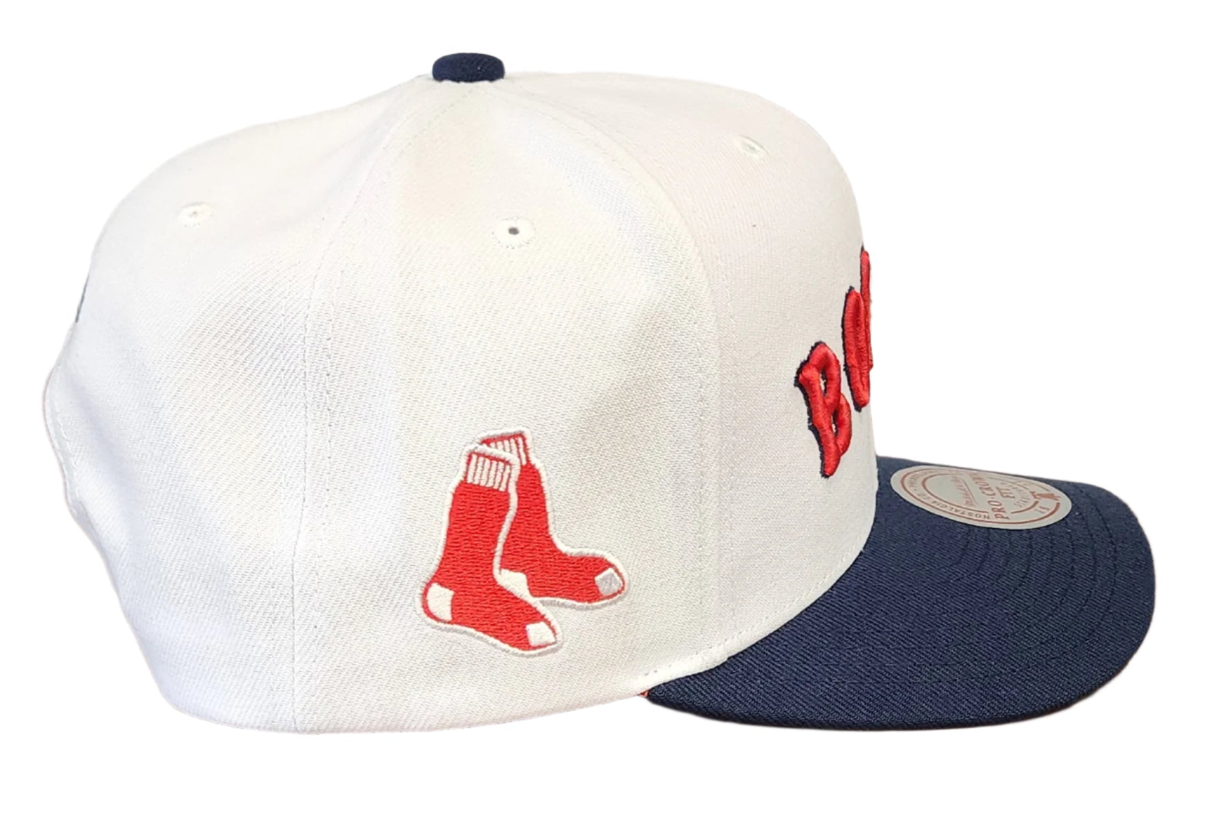 Experience timeless style with the Mitchell and Ness White Boston Red Sox Evergreen Pro Snapback. Made from high-quality materials, this classic snapback features the iconic Red Sox logo, adding a touch of nostalgia to any outfit. Perfect for fans and fashion enthusiasts alike.