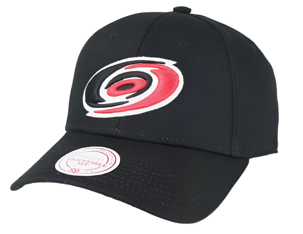 Introducing the Mitchell & Ness Black Carolina Hurricanes Team Dad Hat. Made with high-quality materials, this hat provides both style and comfort. Show your team pride while keeping the sun out of your eyes. Perfect for game day or everyday wear. Get yours today and join the Hurricanes fan club!