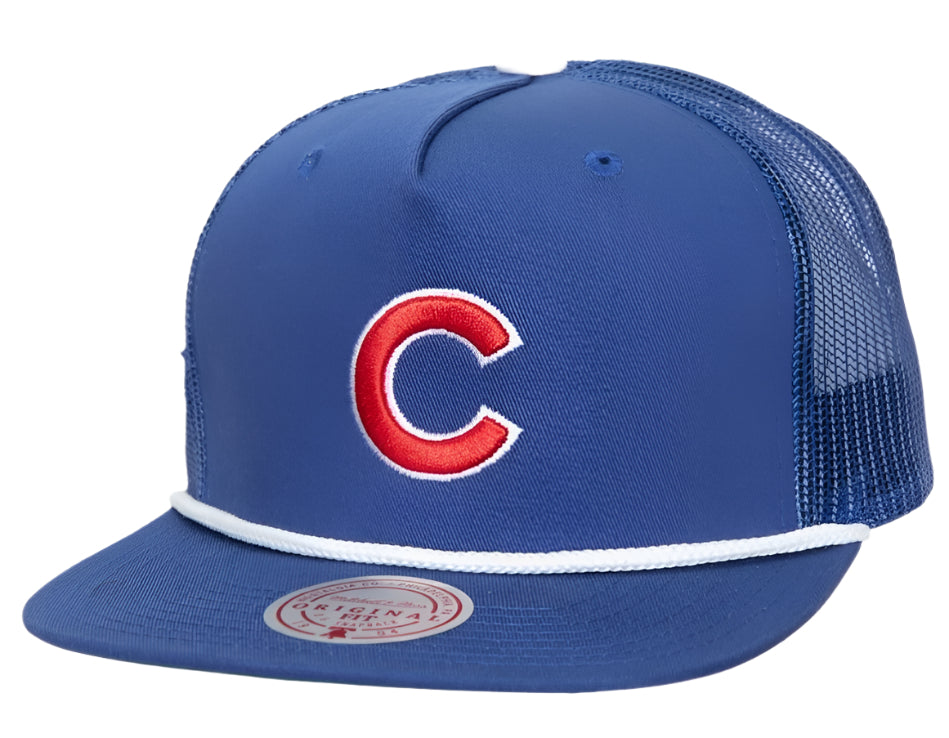 This Mitchell & Ness Blue Chicago Cubs Roper Trucker Hat is a stylish and functional addition to any Cubs fan's wardrobe. Featuring a classic trucker hat design with the iconic Cubs logo, this hat will keep you cool and comfortable while showing off your team pride. Made with high-quality materials and expert craftsmanship, this hat is sure to become a staple accessory for any fan.
