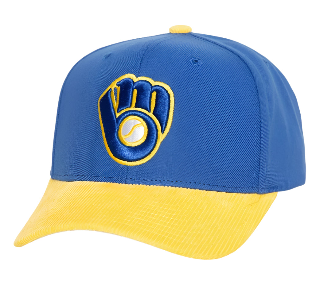 Expertly crafted by Mitchell & Ness, this corduroy snapback features the iconic Milwaukee Brewers logo in a striking blue colorway. Made with high-quality materials, this pro snapback offers both comfort and style for any fan or collector. Own a piece of Brewers history with this premium cap.