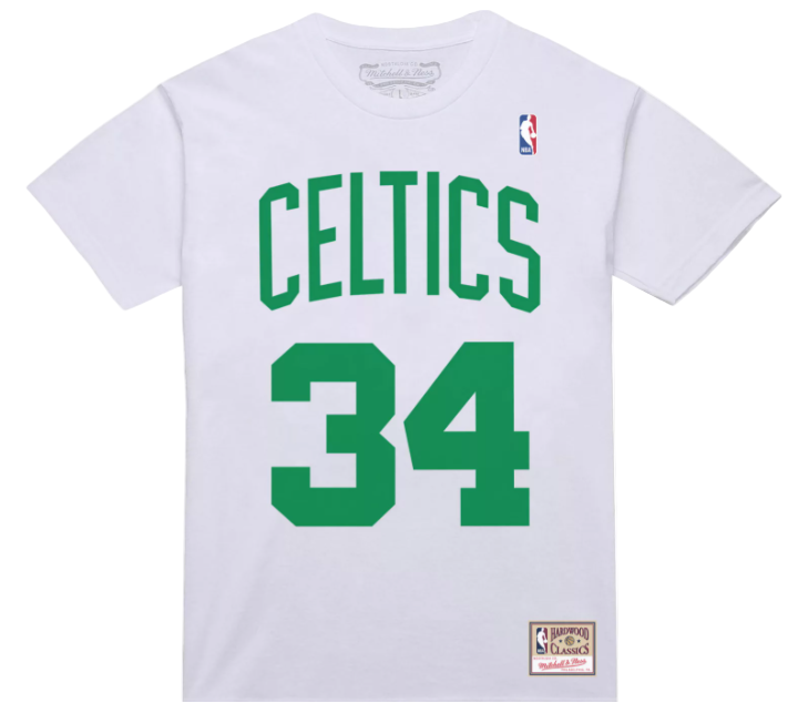 Rock the legendary look of the 2000s with this Mitchell & Ness Boston Celtics tee featuring Paul Pierce's iconic name and number. This throwback piece captures the glory days of one of basketball's most exciting eras, blending vintage style with authentic team spirit. Perfect for die-hard Celtics fans and retro sports enthusiasts who appreciate quality craftsmanship and timeless design. Whether you're courtside or just showing your green pride, this tee is your ticket to instant hoops credibility.