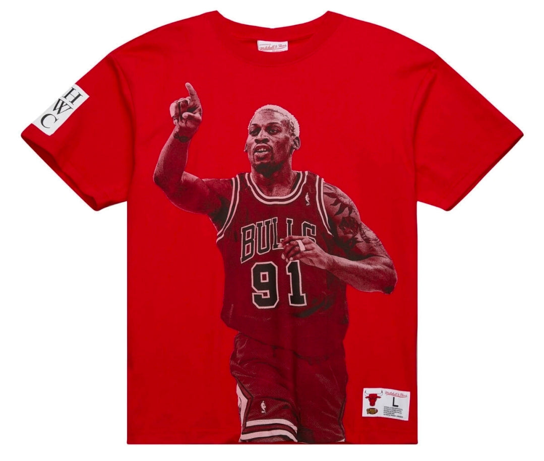 Rock the legend's legacy with this Mitchell & Ness Chicago Bulls Dennis Rodman Ultimate Player Tee. Featuring iconic team graphics and the Worm's unforgettable number, this vintage-inspired tee celebrates one of basketball's most electrifying defenders. Premium quality construction ensures comfort whether you're courtside or just showing your Bulls pride. Perfect for die-hard fans and nostalgia seekers alike—because some players are simply unforgettable.