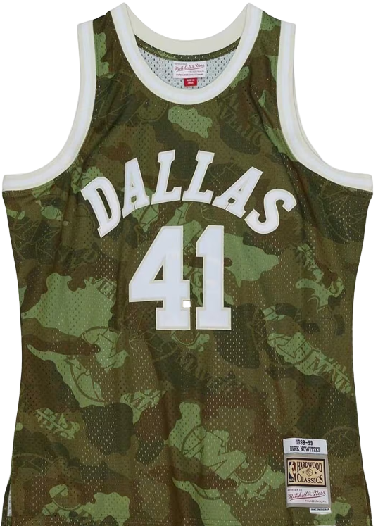 Step onto the court or hit the streets in style with the Mitchell & Ness Dallas Mavericks Dirk Nowitzki 1998 Ghost Green Camo Swingman Jersey. This playful twist on a classic jersey combines iconic Mavericks history with a cool green camo design that stands out. Celebrate Dirk's legendary rookie year while enjoying a comfy fit perfect for game day or everyday hustle. Whether you’re a die-hard fan or just love fresh sportswear, this jersey brings vintage vibes with a bold, modern edge.