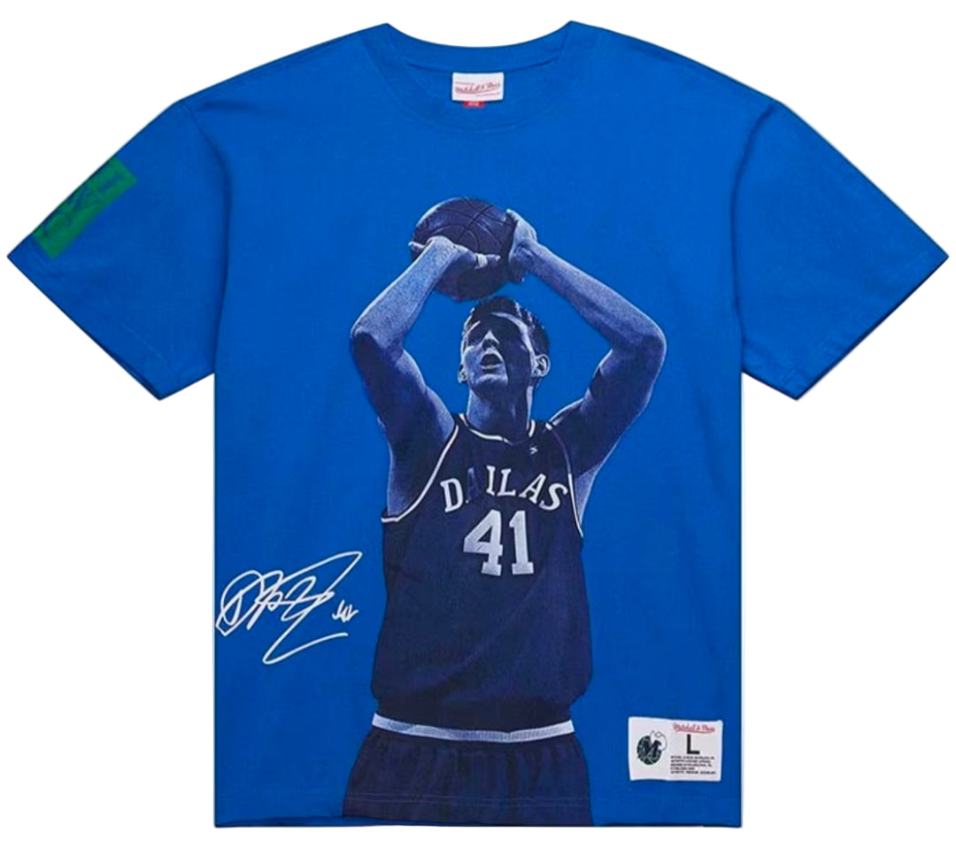 Celebrate the legend with the Mitchell & Ness Dallas Mavericks Dirk Nowitzki Ultimate Player Tee! This playful tribute features classic design details that honor Dirk’s incredible career while keeping you stylish and comfortable. Perfect for game days or casual outings, it’s a slam dunk for any Mavericks fan ready to show off their ultimate player pride.