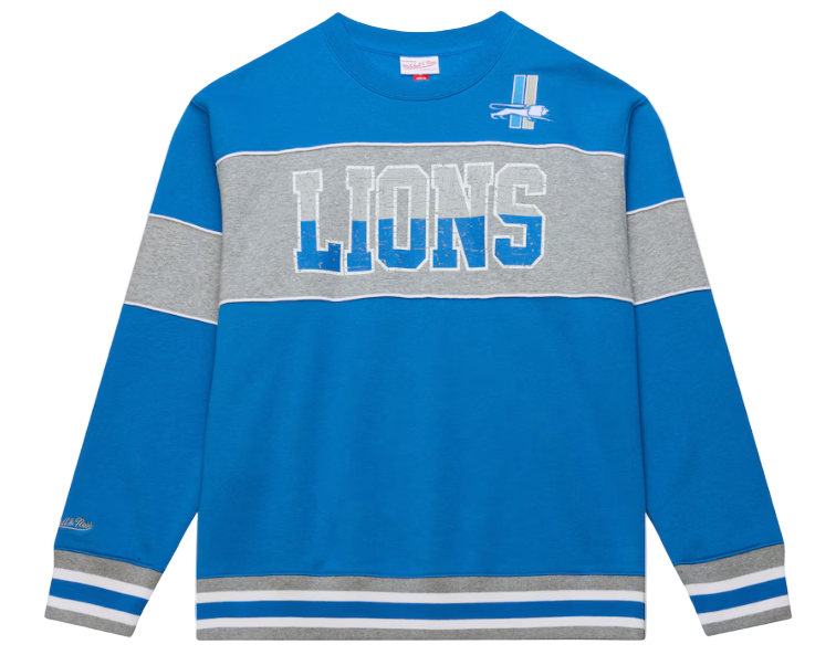 Show off your spirited Detroit Lions fandom in this eye-catching crewneck sweatshirt. Featuring printed team graphics with distressed details, an embroidered logo and woven stripes on the rib-knit trim, it offers a vintage look and comfortable feel. Plus, the fleece lining adds extra warmth, making this pullover ideal for layering up on cooler game days.