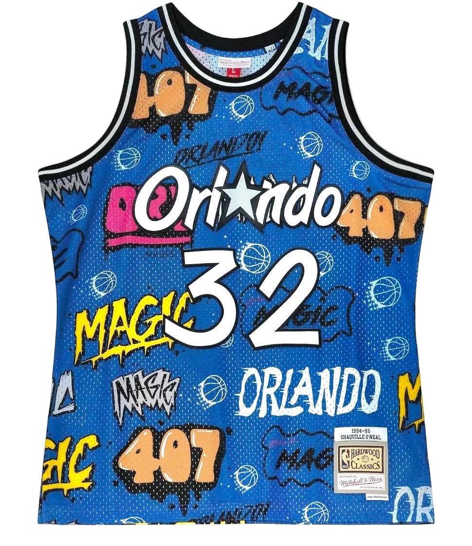 Step back in time and show off your Magic fandom with this Mitchell & Ness Orlando Magic Shaquille O'Neal 1994 Slap Sticker Swingman Jersey. Rock the iconic Shaq look from his early days, complete with bold team colors and authentic details that bring the 90s court vibe straight to your wardrobe. Perfect for game day or just adding a playful slam dunk to your style!