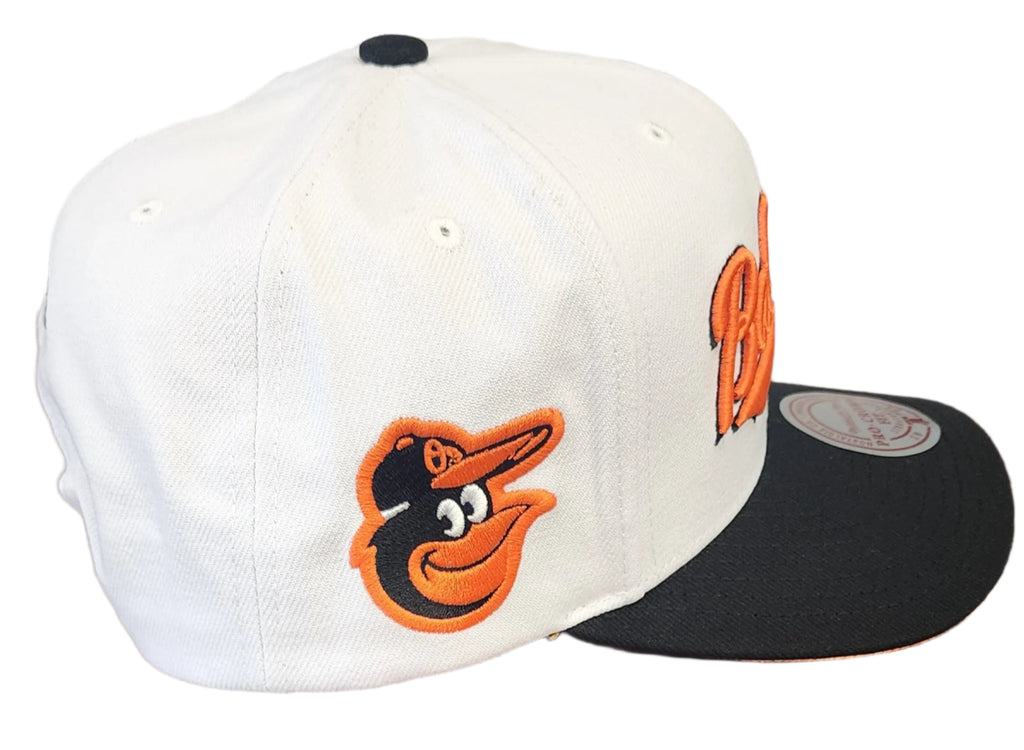 Elevate your game with the Mitchell & Ness White Baltimore Orioles Evergreen Pro Snapback. Constructed with high-quality materials, this snapback boasts a timeless design and a comfortable fit. Show your love for the Orioles while adding a touch of sophistication to any outfit.