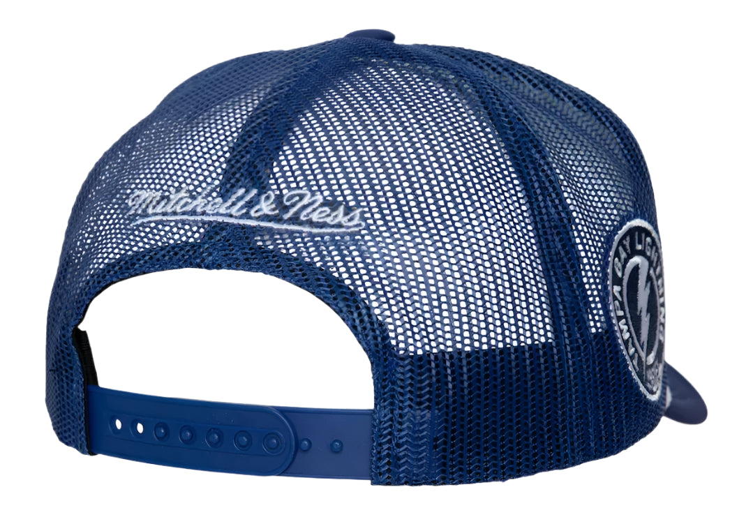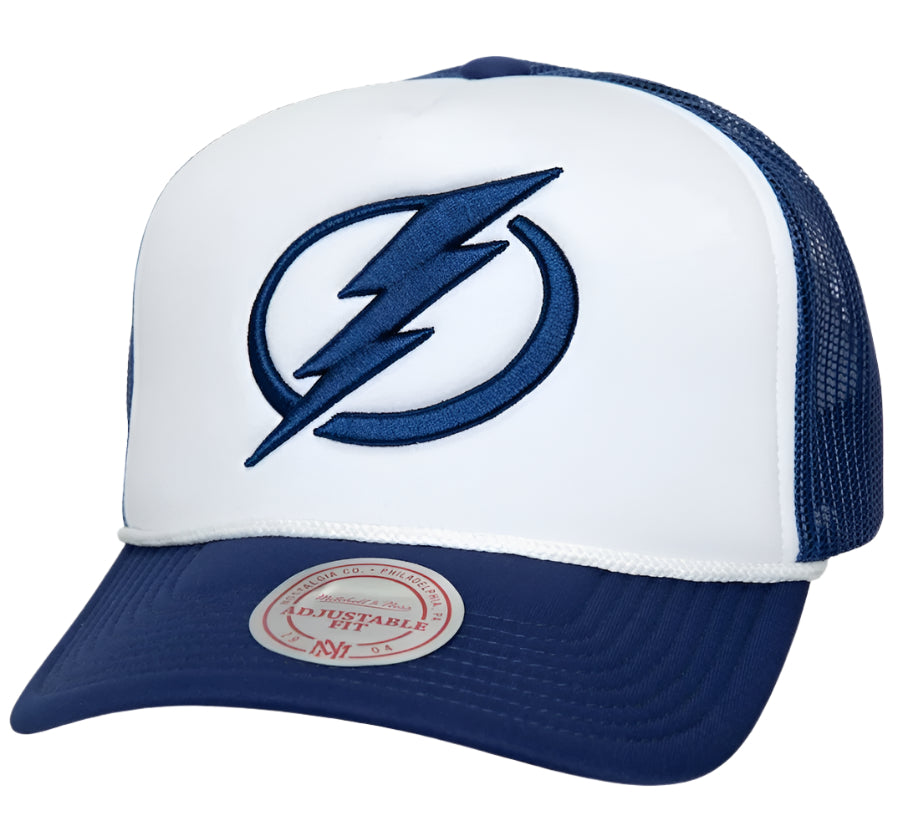 Enhance your Tampa Bay Lightning fandom with the Mitchell & Ness Blocker Trucker Hat. Constructed with white and royal colors, this hat features the iconic Lightning logo. Made from high-quality materials, this trucker hat offers both style and comfort for any fan.