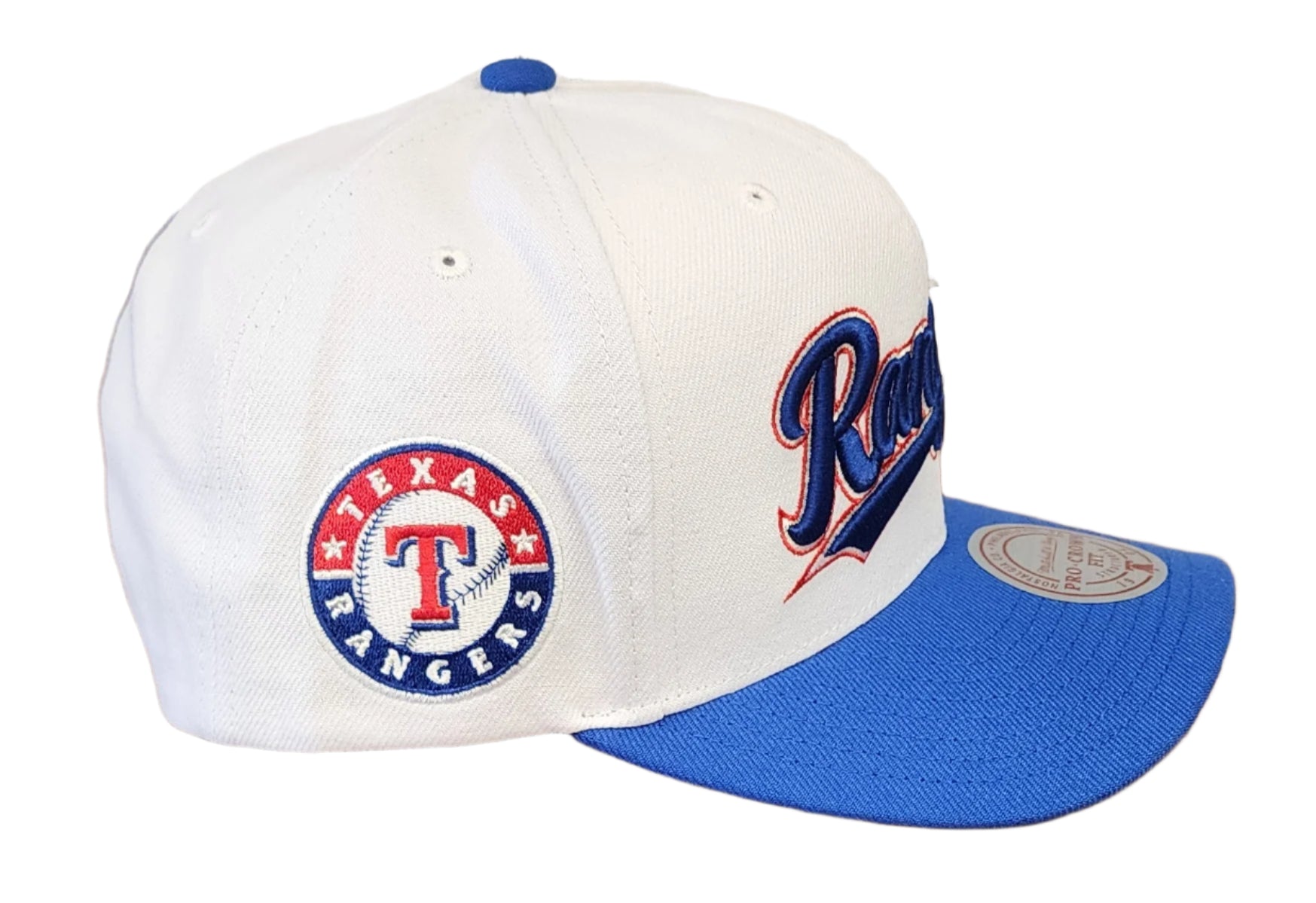 The Mitchell & Ness White Texas Rangers Evergreen Pro Snapback is a must-have for any Rangers fan. Made with high-quality materials and featuring the iconic team logo, this snapback is perfect for showing your support on game day. Its adjustable fit ensures comfort and style for all.