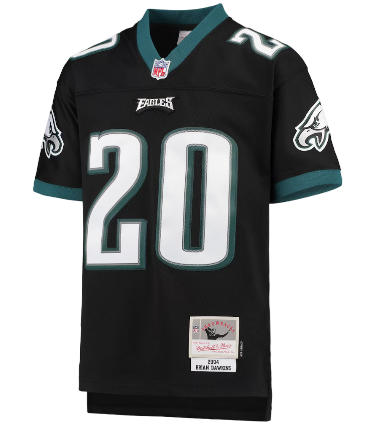 Rock the legend's look with this Mitchell & Ness Youth Philadelphia Eagles Brian Dawkins Black Legacy Jersey. Perfect for young fans who want to honor one of the greatest safeties in NFL history, this throwback piece brings authentic vintage style to game day. The classic black design captures Dawkins' iconic era, making it a must-have for Eagles enthusiasts who appreciate football royalty. Whether cheering from the stands or showing off their fandom, kids will feel like they're wearing a piece of Eagles history.
