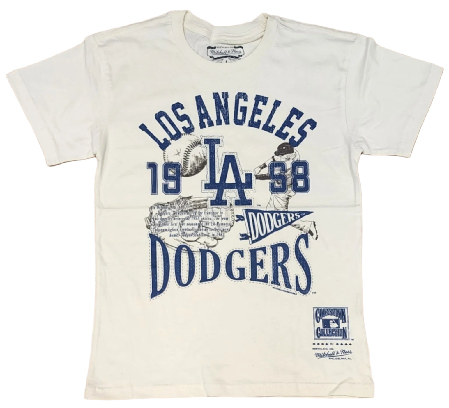 Expertly designed for young fans of the Los Angeles Dodgers, the Mitchell & Ness Youth Cream Heritage Slugger T-Shirt combines style and team spirit. With its vintage-inspired cream color and iconic team logo, this t-shirt is a must-have for showing off your love for the Dodgers. Made of high-quality material for comfort and durability.