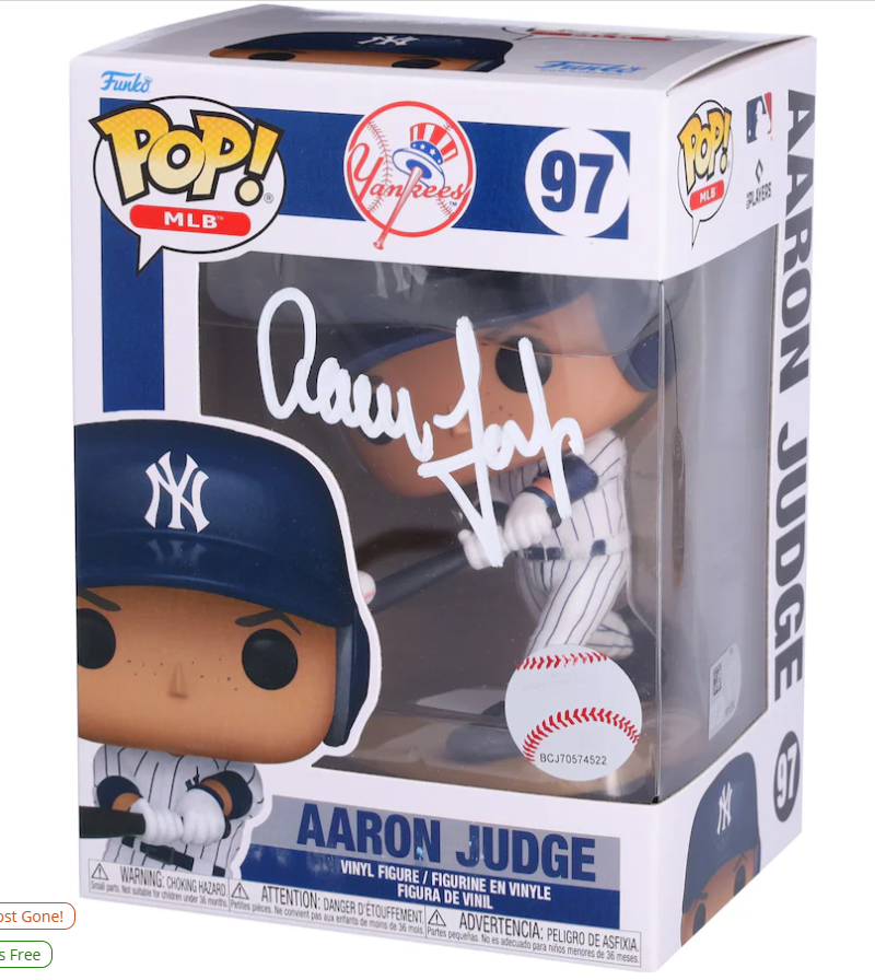 Own a miniature version of your favorite Bronx Bomber with a Funko Pop! Vinyl Figurine signed by Aaron Judge. This figurine features the New York Yankees outfielder's distinct signature, making it an ideal item for any serious Judge collector. To ensure its authenticity, this officially licensed MLB collectible includes a hologram that can be verified online.
