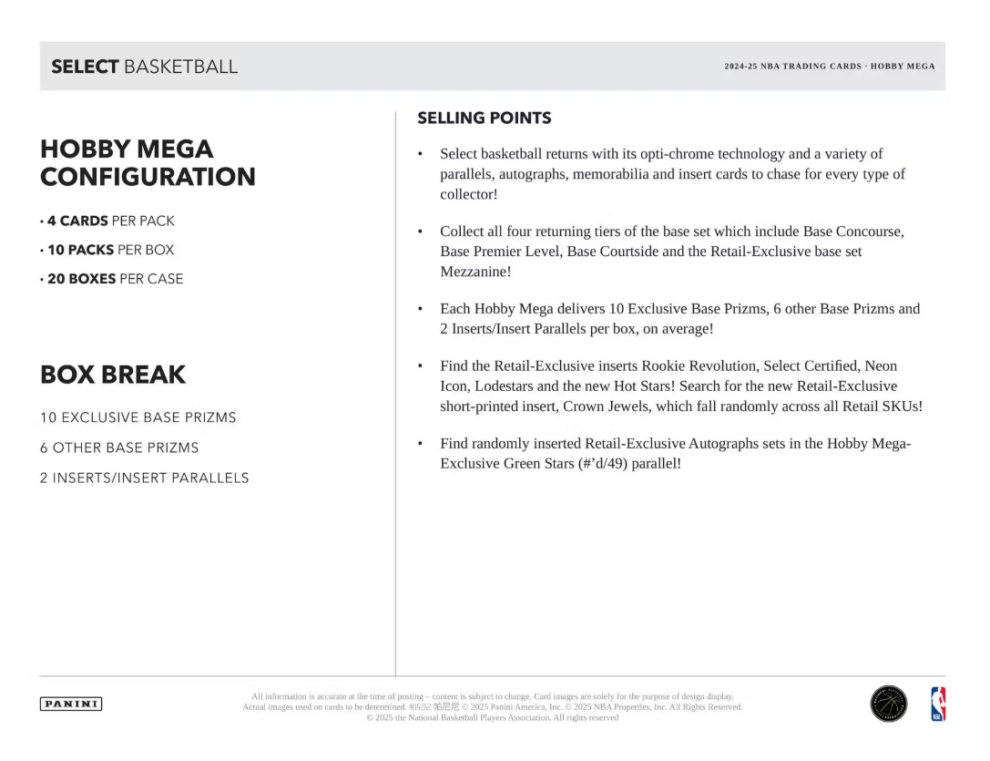 Sealed Case 2024/25 Panini Select Basketball Hobby Mega Box (20 Boxes)