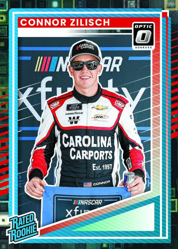 BASE RATED ROOKIES OPTIC: 2025 features another stacked rookie class that includes top racing prospect, Connor Zilisch! Also hunt for the super rare Black Pandora optic parallel!