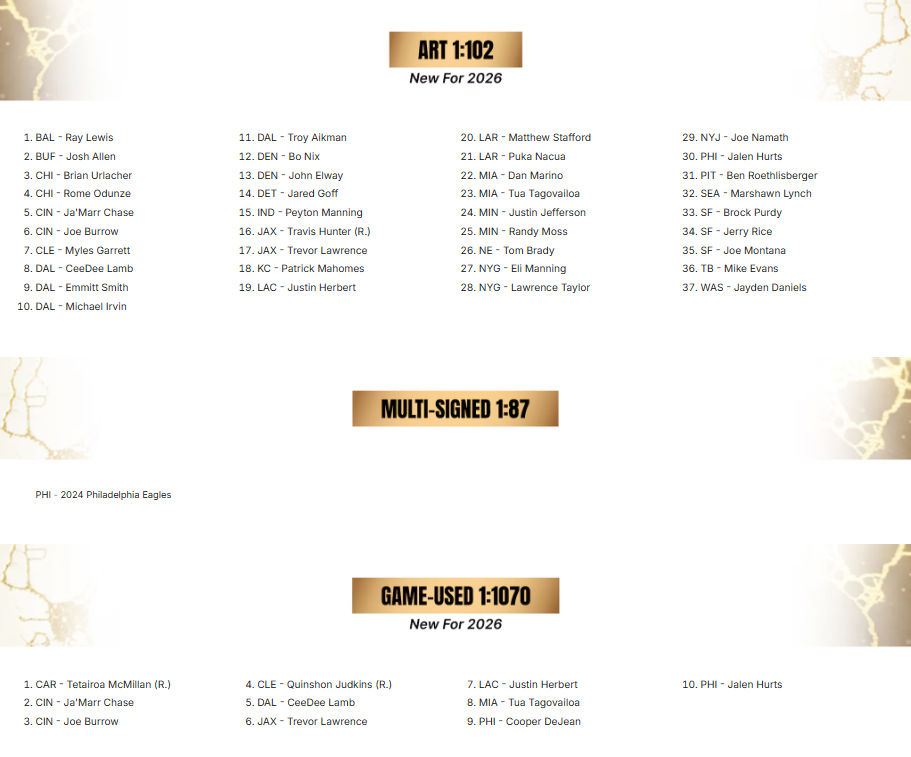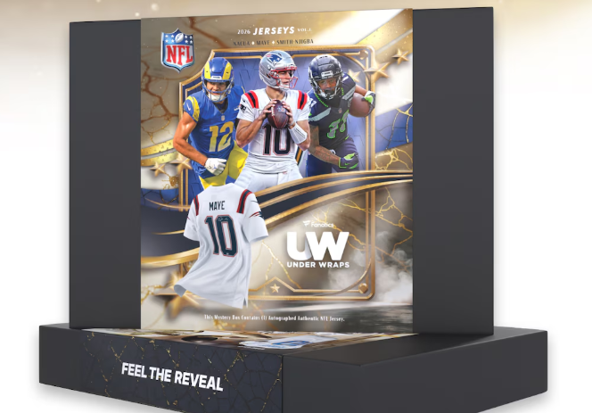 Score big with Under Wraps 2026 NFL Jerseys Vol. I! Each box contains one mystery autographed jersey from your favorite NFL stars—the ultimate surprise for collectors and fans alike. Will you unwrap a legendary player's signature? There's only one way to find out. Perfect for building your collection or gifting to the football fanatic in your life. Limited to one jersey per box, so grab yours before they're gone!